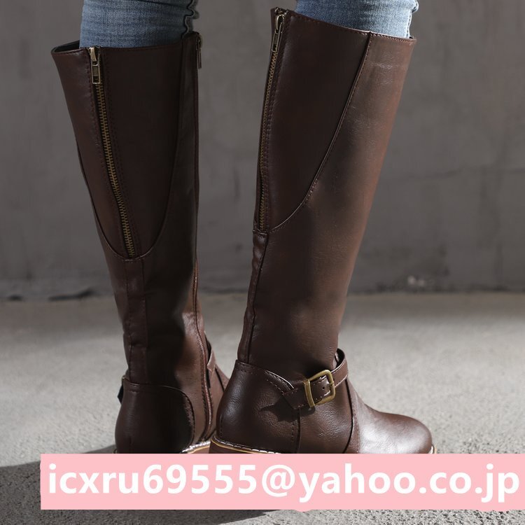> 超人気☆ブーツ レディース ロングブーツジョッキーブーツ ローヒール ロング丈女性ブーツ おしゃれ 履きやすい 美脚22.5cm~26.5cm ブラウ