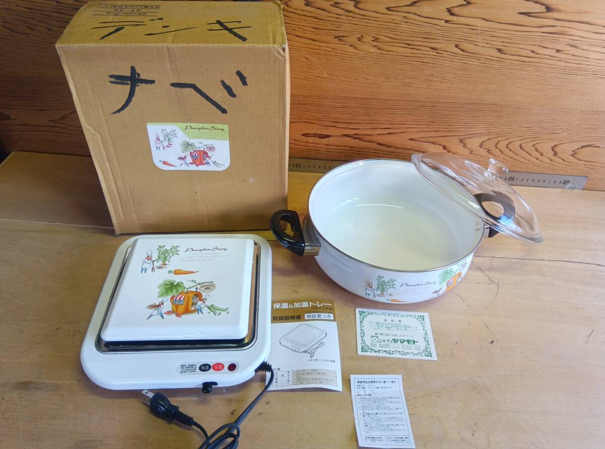 > 25030203 両手鍋&保温プレート 家庭用ホームプレート ホーロー鍋 ㈱丸山技研 未使用品 保温pレート付き鍋 ホーロー鍋