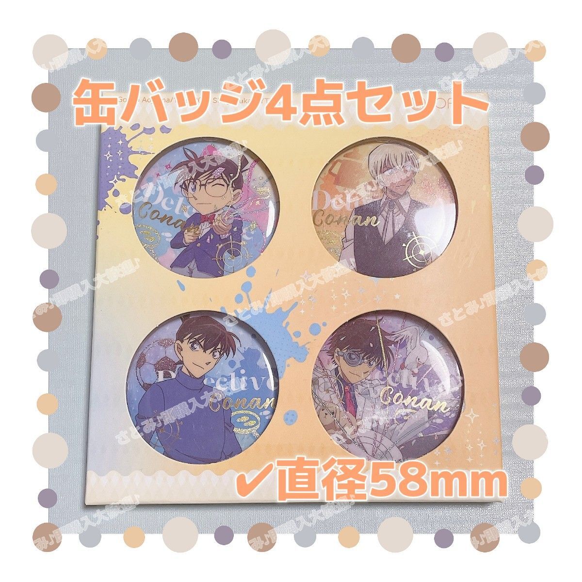 - 名探偵コナン コナン 缶バッジ 4点セット 58mm 江戸川コナン 安室透 工藤新一 怪盗キッド