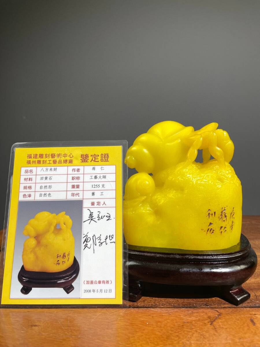 - 『館蔵珍品 寿山石 田黄石 細密彫 八方來財印章』置物 賞物 貴重物品 収蔵品 中国古美術
