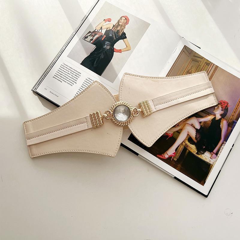 - 71cm~80cm 【ベージュ】 ゴールドバックル 幅広ゴムベルト