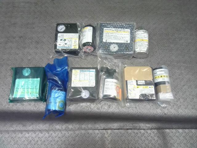 - 車載工具 パンク修理キット 5個セット HONDA×1 外車×1 メーカー不明×3 コンプレッサー 薬剤SET