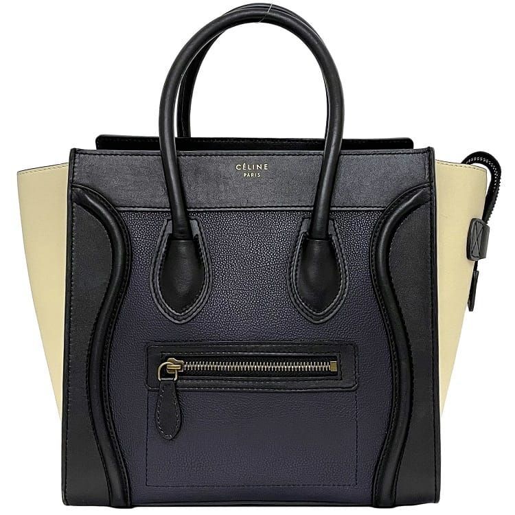> セリーヌ トートバッグ ラゲージ マイクロショッパー ネイビー ブラック クリームベージュ 167793 美品 レザー