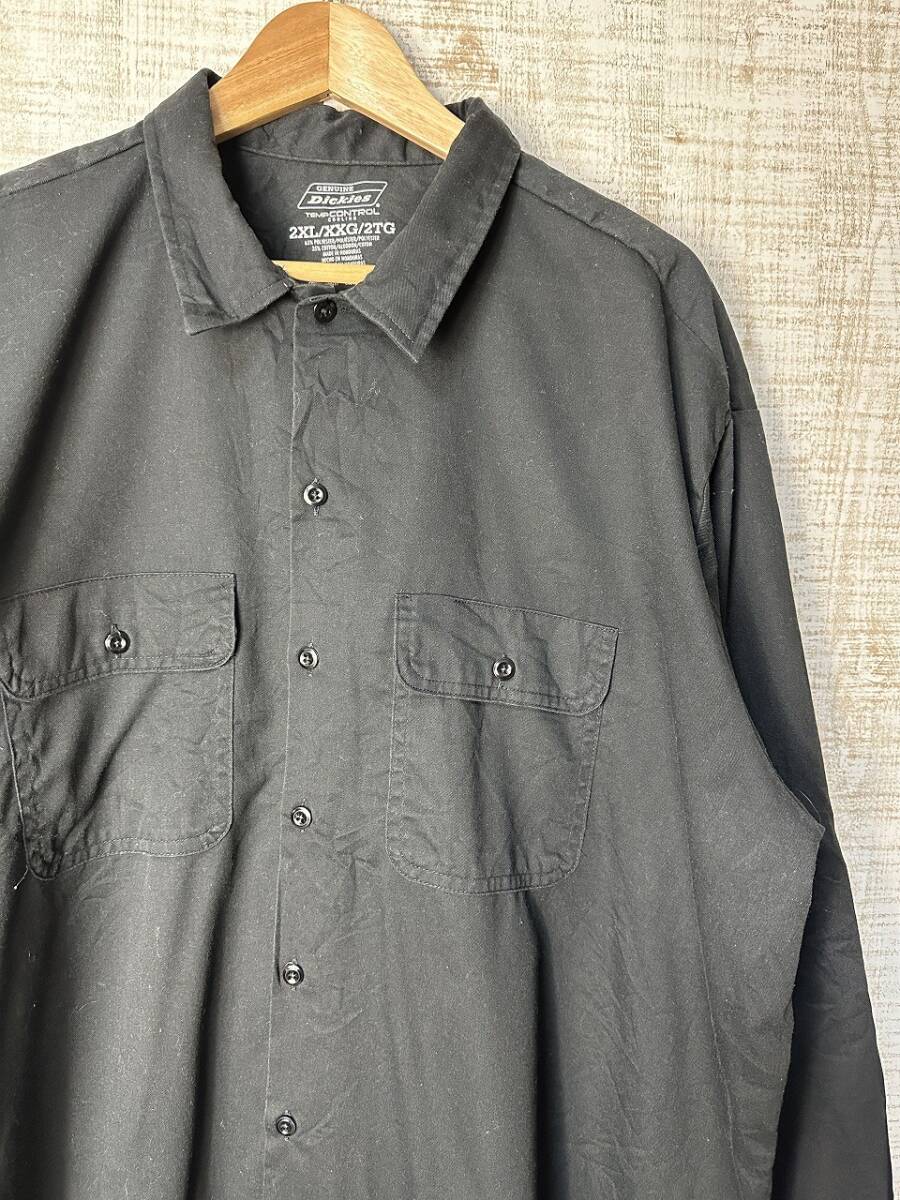 - ☆超ビッグサイズ US古着 Dickies ディッキーズ ワークシャツ 長袖シャツ ポケット ブラック黒【2XL/XXL】コットンポリ ◆4877◆
