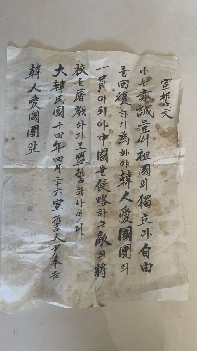 - K6032『朝鮮古書道 李朝時代 古高麗 朝鮮国 朝鮮書法★宣誓文 古書道★ 朝鮮古書画 真筆 手書き 肉筆卷物』50×38cm