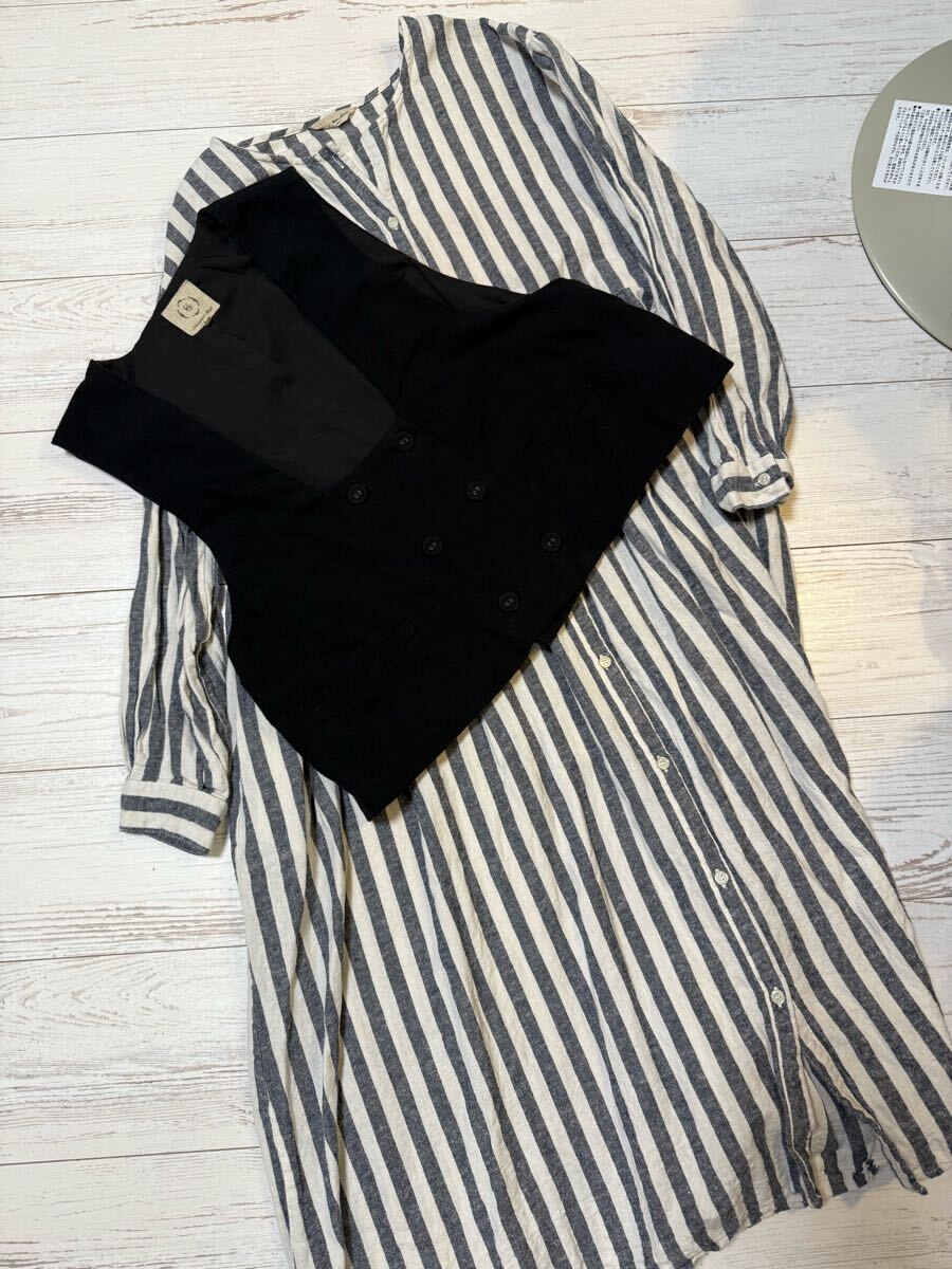 > Sm2洗いざらしワンピースとベストのセットsizeフリー バスト50 丈106ワンピースの一番上のボタンが無いですが替えが付いていると思います
