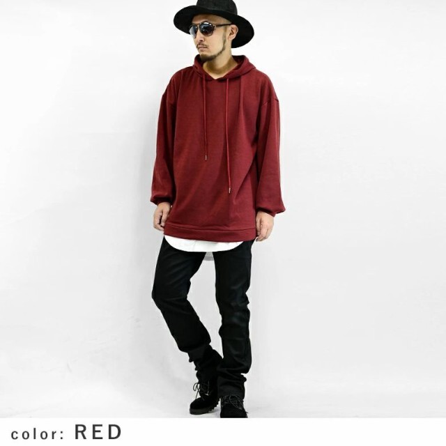 - ぐーんと伸びる伸縮性 ビック プルオーバーパーカー 大きいサイズ rv8201 新品 レッド L