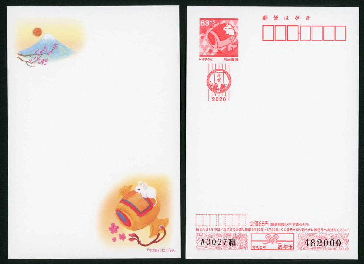 18440B4◆複数出品◆2020年用 小槌とねずみ63円★絵入り年賀はがき 令和2年用