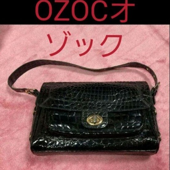 - OZOC ショルダーバッグ 黒 エナメルOZOCオゾッククロコ型押しバックです ショルダーバッグ レザー