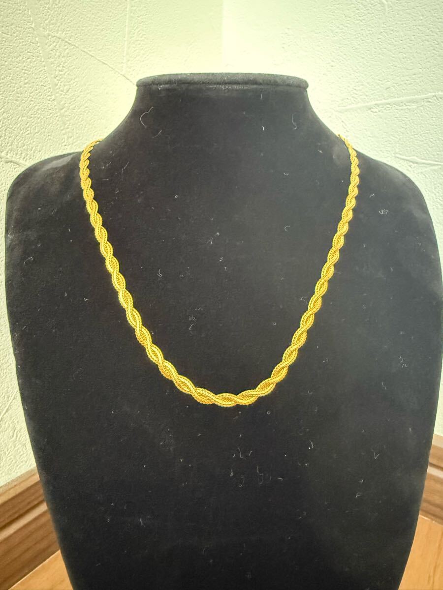 - 純金ジュエリー K24 編み込み ツイスト 純金ネックレス 24K イエローゴールド 金 ユニセックス 金高騰中