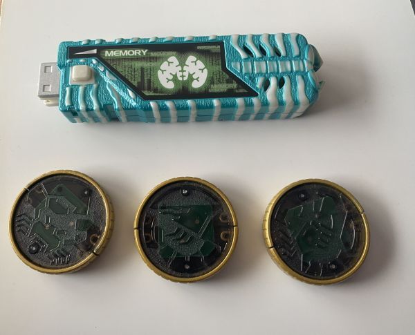 - 中古★ DXオーズドライバー(別売)で遊べる!カニ・エビ・サソリ コアメダル3枚セット+ドーパントメモリ オーメダルセットEX★現状品
