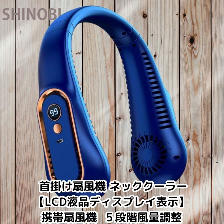 - 首掛け扇風機 ネッククーラー LCD液晶ディスプレイ表示 (バッテリー残量が一目で確認) 携帯扇風機 急速冷却 5段階風量調整 軽量