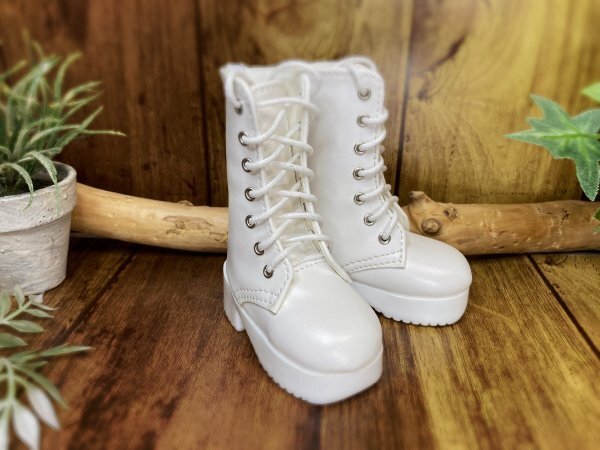 - ●編み上げミドルブーツ ホワイト MSD/MDD/オビツ50共通サイズ(ドール靴の内寸:縦 約6.5cm・横 約3.0cm)●
