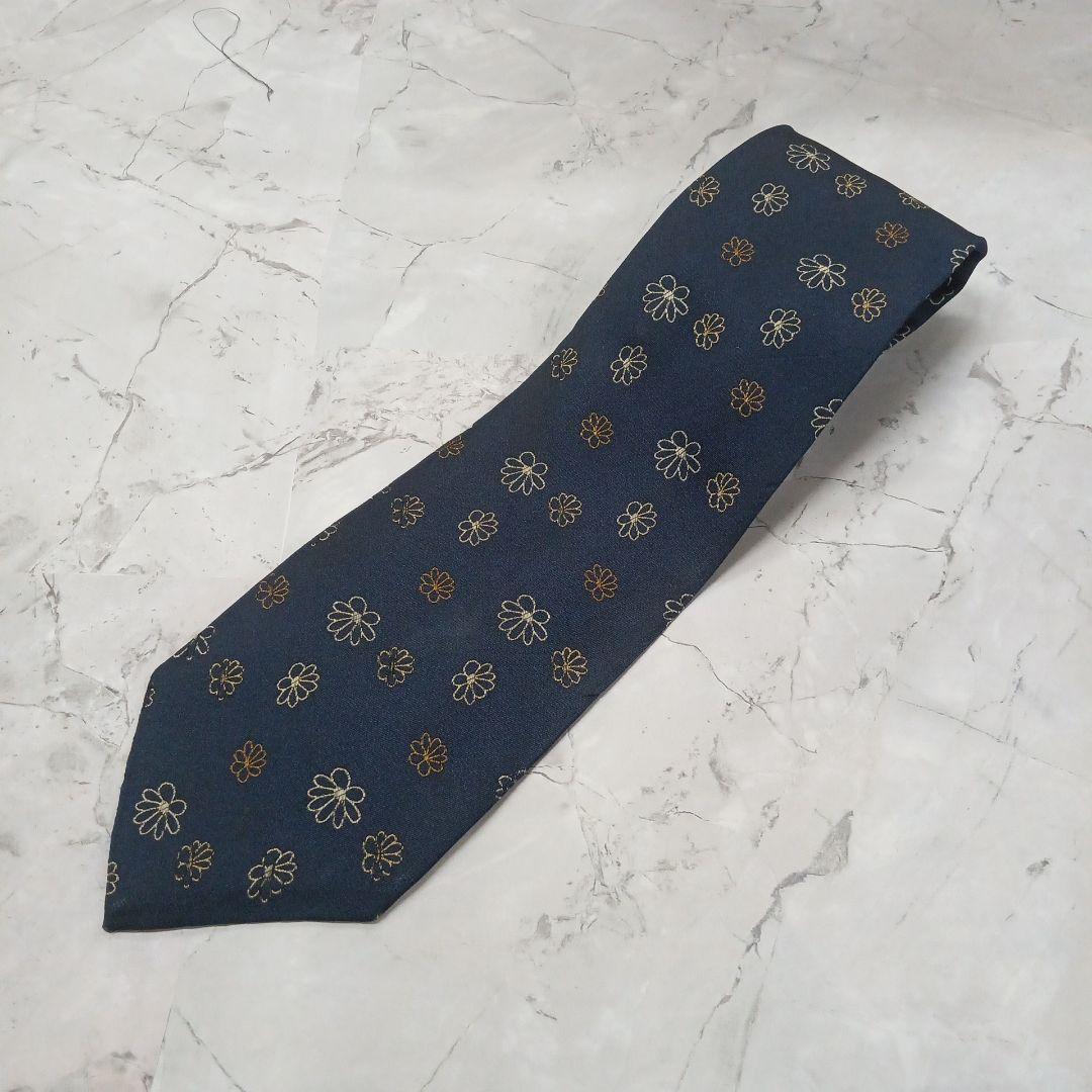 - ポールスミス ネクタイ 青 菊 紋章柄 花柄 シルク【n570】