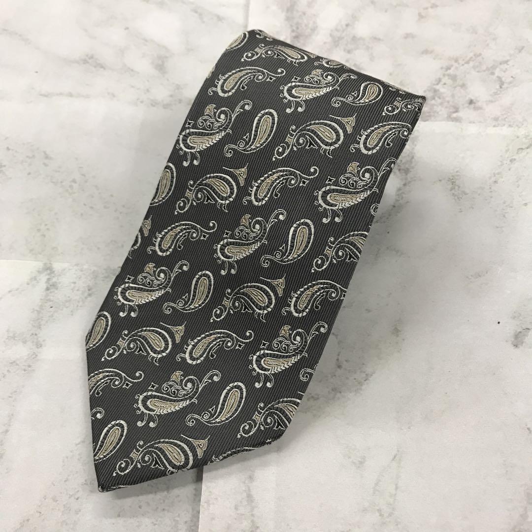 - エポカ ネクタイ 灰色 総柄 シルク100 【n613】
