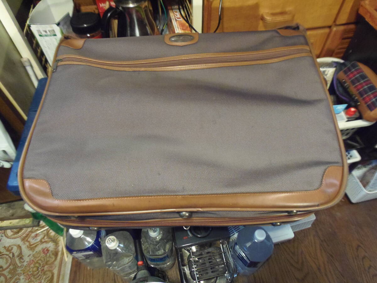- スーツケース 一部レザー革 ブラウン ロックキー3本 ショルダーストラップ ハンガー付き 貴重品 113.