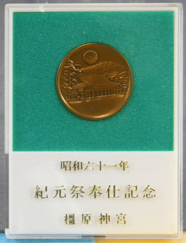 - ★ 橿原神宮 記念メダル 紀元祭奉仕記念 昭和61年