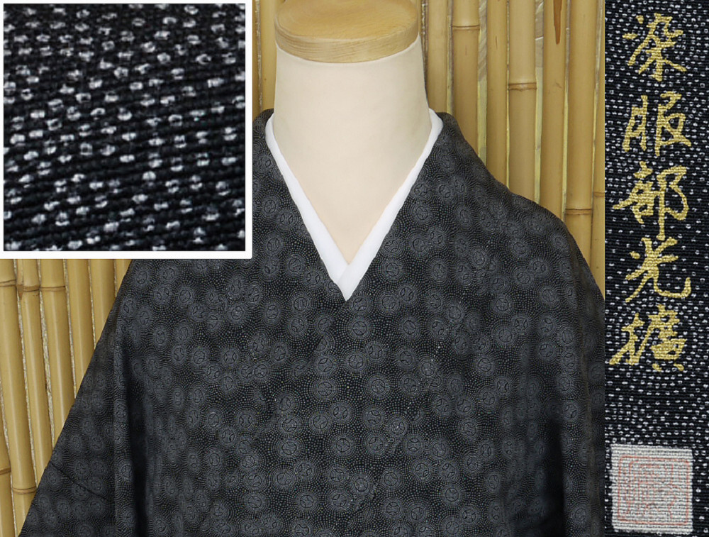 - 【京かんざし】438「伝統工芸士 服部光擴」錐彫 江戸小紋 黒地 躾糸付未着用身丈168 cm裄丈72 cm★即決送料無料!