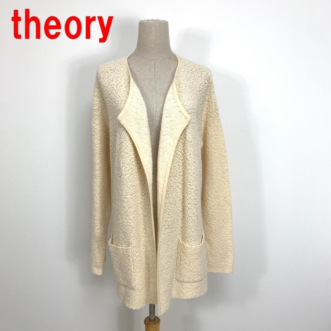 - A5218 セオリー 長袖カーディガン ウール ロング 白系 theory ホワイトアイボリー S