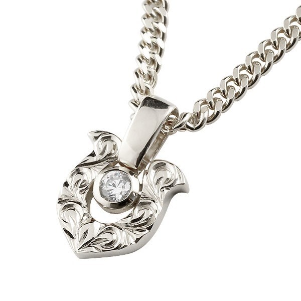 - シルバー ネックレス 喜平 トップ メンズ 馬蹄 キュービックジルコニア ハワイアンジュエリー キヘイ ペンダント sv925 スクロール