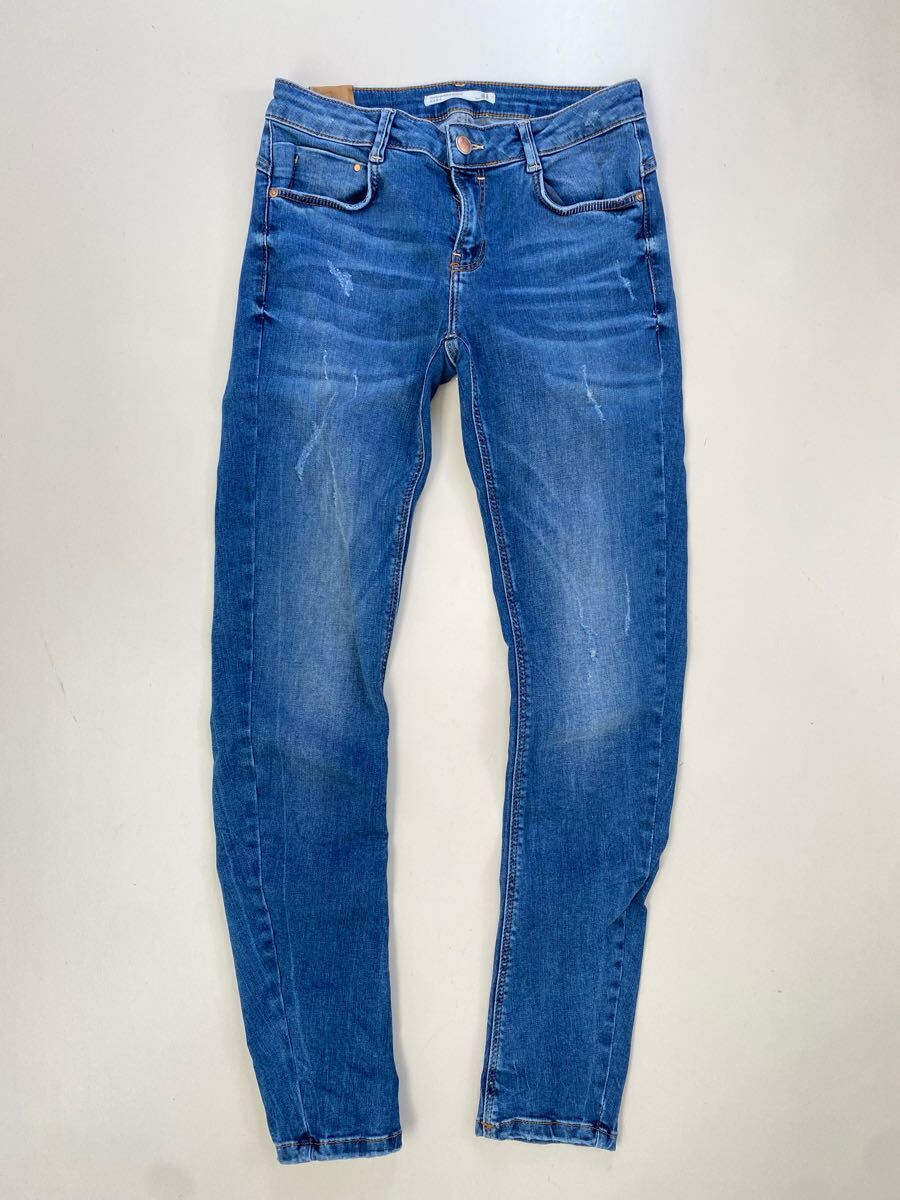 > ★ ZARA スリム デニムパンツ インディゴ USA 06サイズ ◆ ストレッチ ダメージ ジーンズ スキニー ザラ ◆W25 MいP3N-12