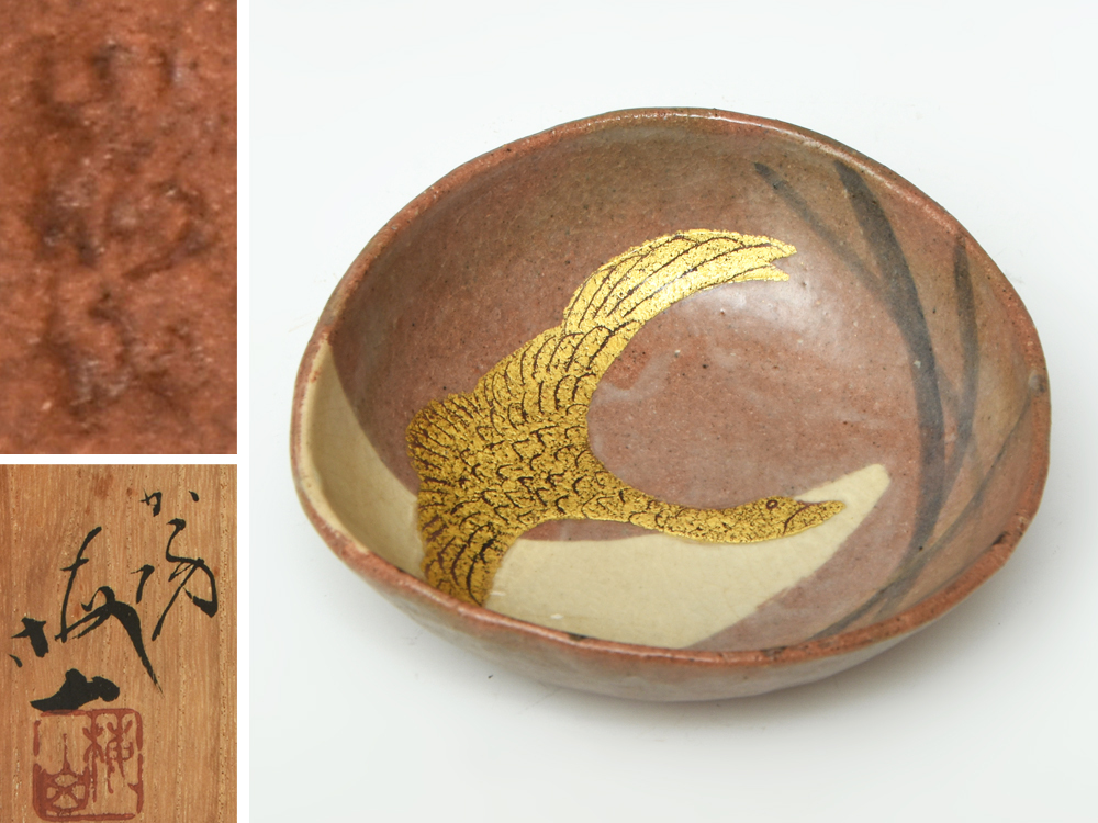 - 中村梅山 (造) 酒盞 共箱 共布 しおり 酒器 酒盃 ぐい呑 猪口 杯 小皿 会席 懐石道具 和食器 茶道具 九谷 陶磁器 z9729t