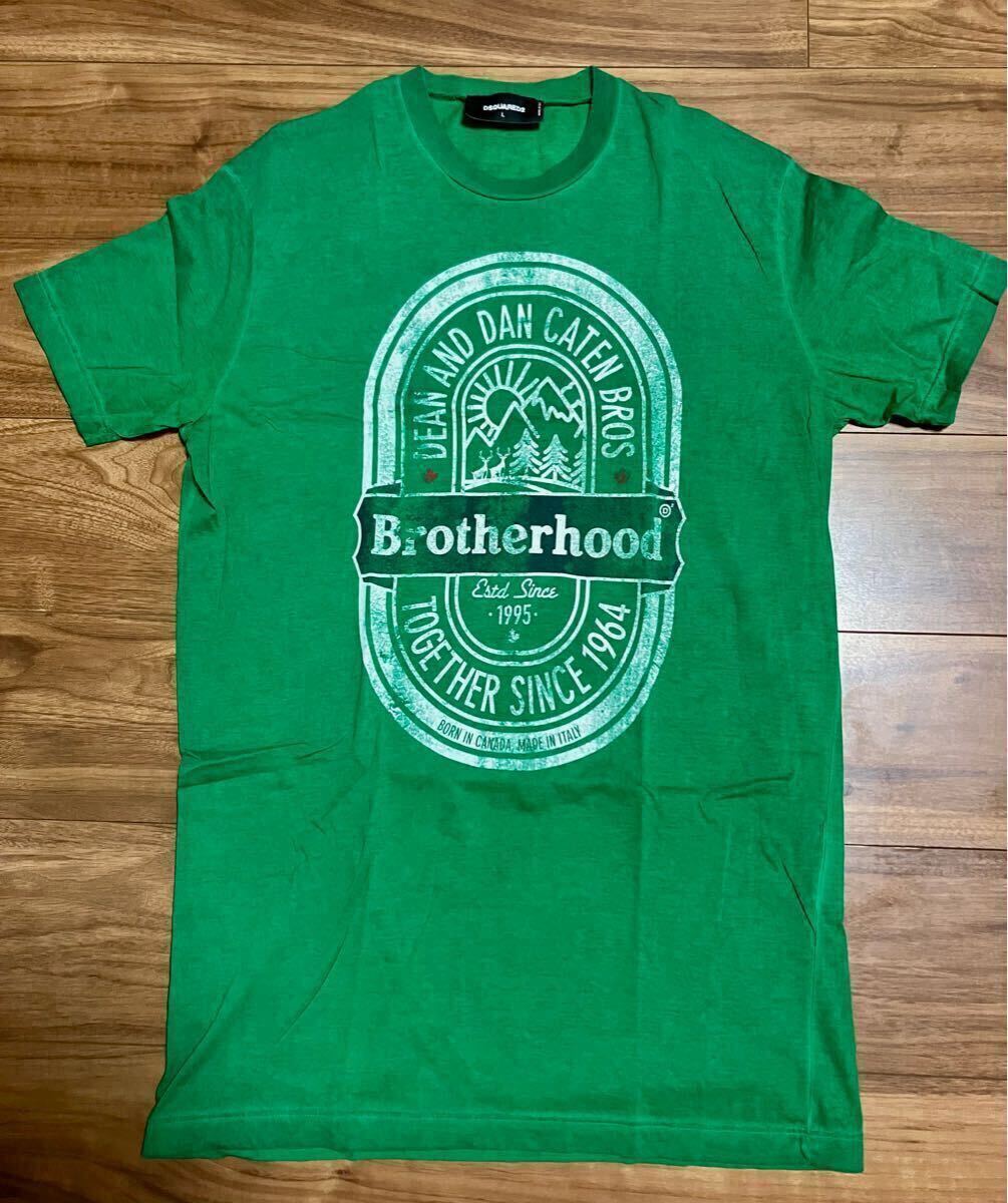 - 【美品】DSQUARED2/ディースクエアードTシャツ(Lサイズ)/ロゴ /プリント/イタリア製/半袖/緑色/グリーン/