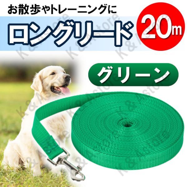 - ロングリード 20m 犬用 ドッグラン ペット 散歩 小型犬 中型犬 大型犬 長い リード 絡まない しつけ トレーニング グリーン 緑