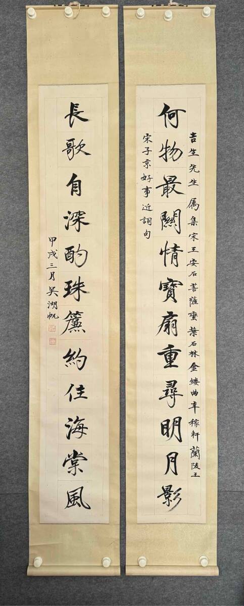 - 中国書画 掛け軸 近現代 呉湖帆書「書道対聯」紙本立軸 書道巻物 真筆逸品 肉筆保証 唐物 時代物 古美術 LOT-03115