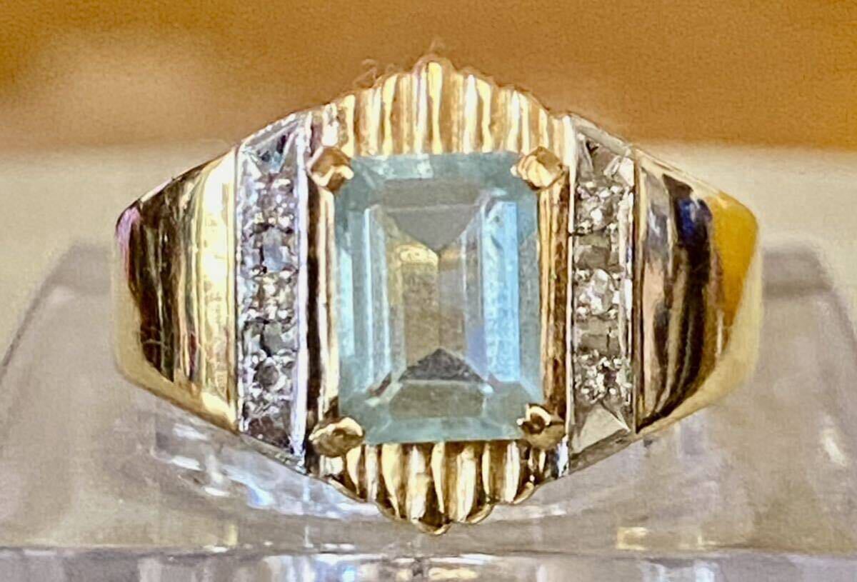 - 氷河の青 天然アクアマリン約1.61ct k18.PTコンビ メレダイヤセッティングリング