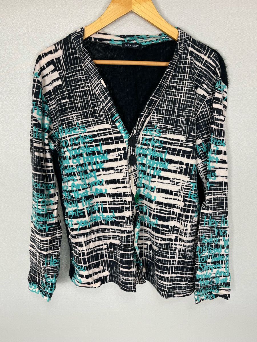 - MILK BOY ミルクボーイ カーディガン 柄物 切り替えデザイン ニット プリント 長袖 希少 Y2K