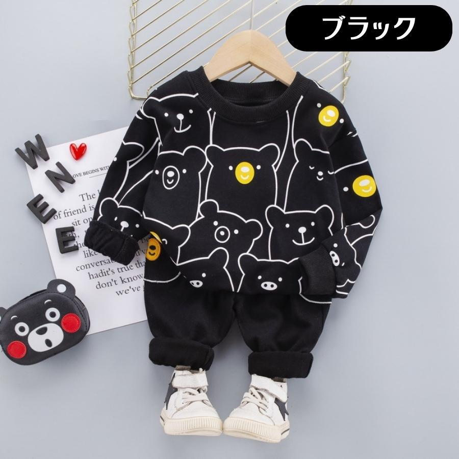 > ブラック 100cm 2点 セットアップ スウェット 上下セット トレーナー パンツ 長袖 アニマル柄 くまさん キッズ ベビー服
