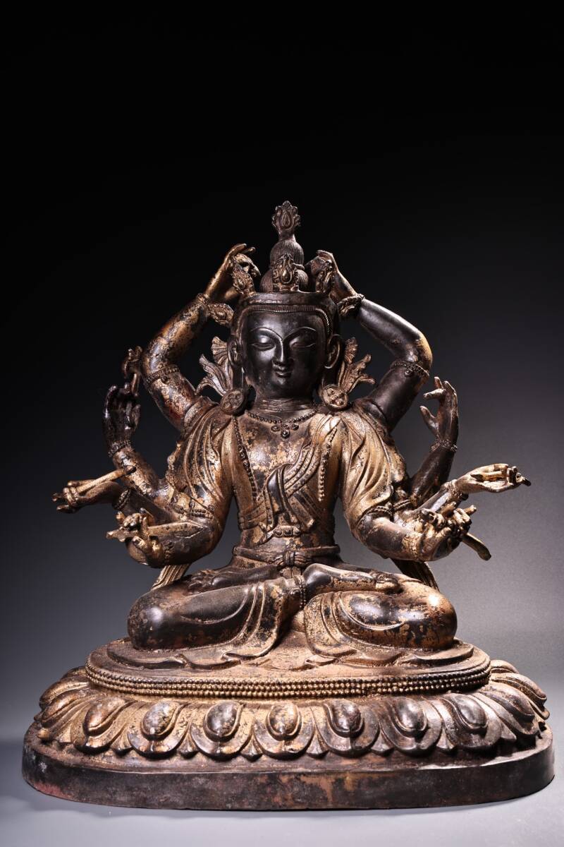 - 旧蔵 チベット 純銅 全銅泥金 蔵伝準提仏母仏像1体 仏像 奉納されていた 供養品 極細工 中国古玩 古美術 骨董品 203-11