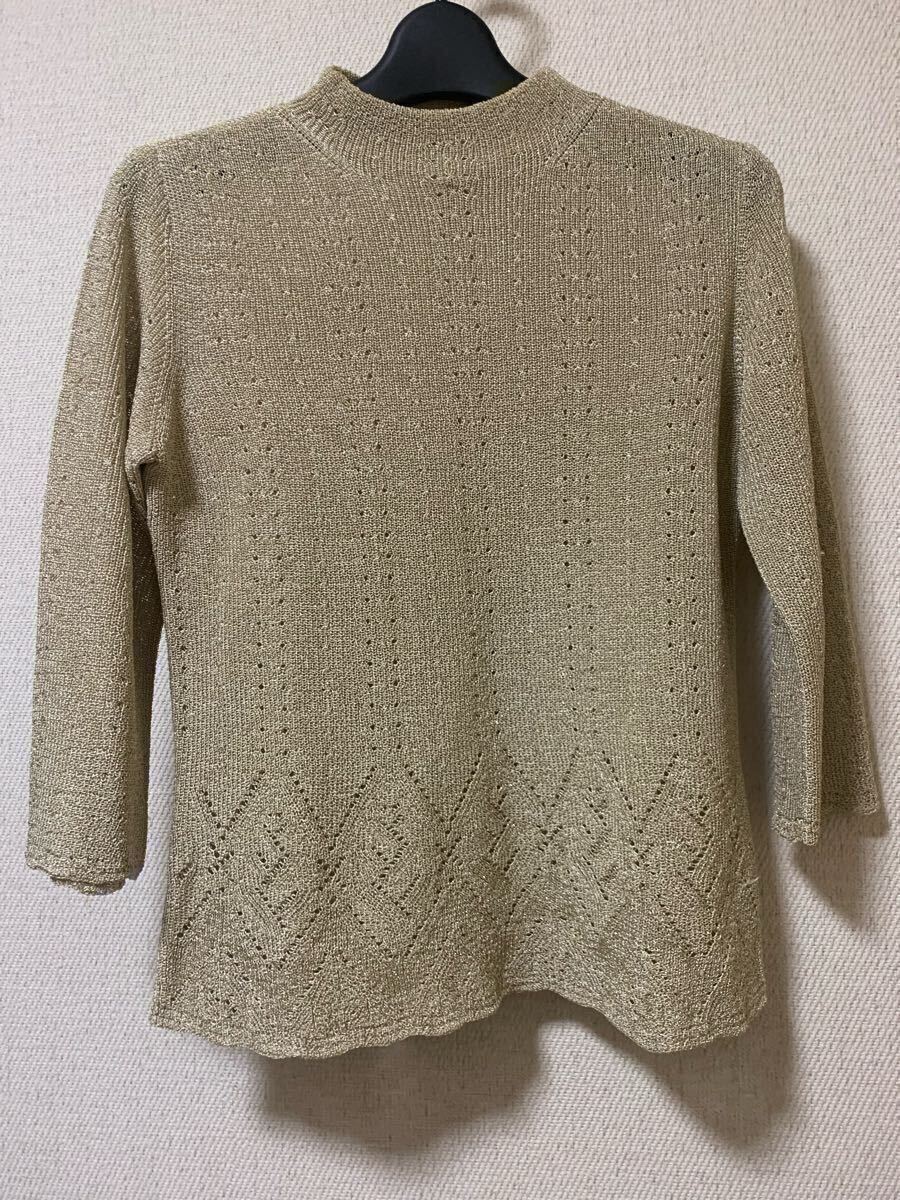 > CHADORIAN チャドリアン 七分丈 ニット M サンドベージュ ゴールド ラメ 春 婦人 トップス 上品 おしゃれ セーター ハイネック