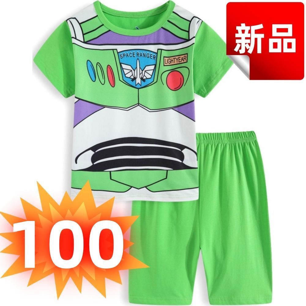 > ★新品★子供用 バズ・ライトイヤー 半袖パジャマ 上下セット トイストーリー キッズ 部屋着 グリーン 宇宙服デザイン ルームウェア 100