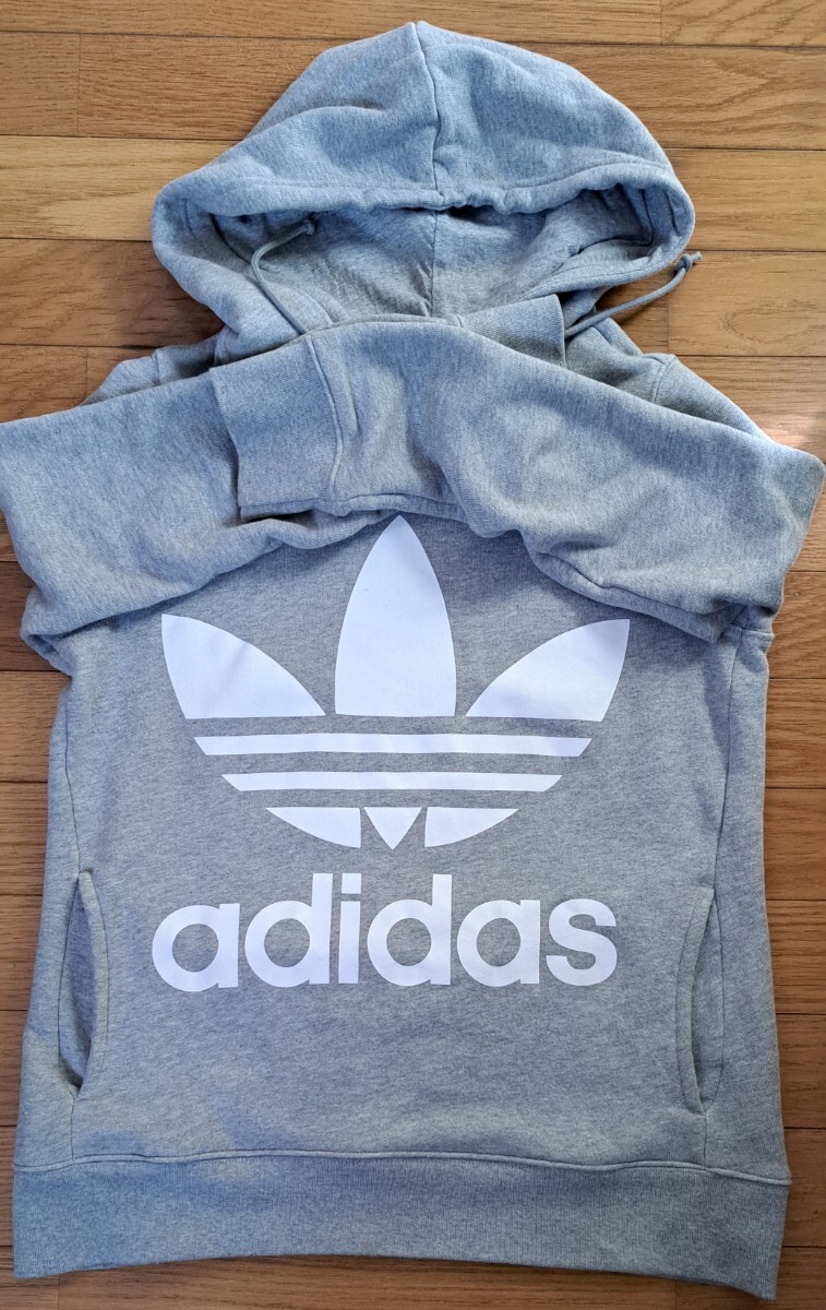 - ★adidas★パーカー★デカ★ロゴ★アディダス★グレー★フード★ポケット★スウェット★L★