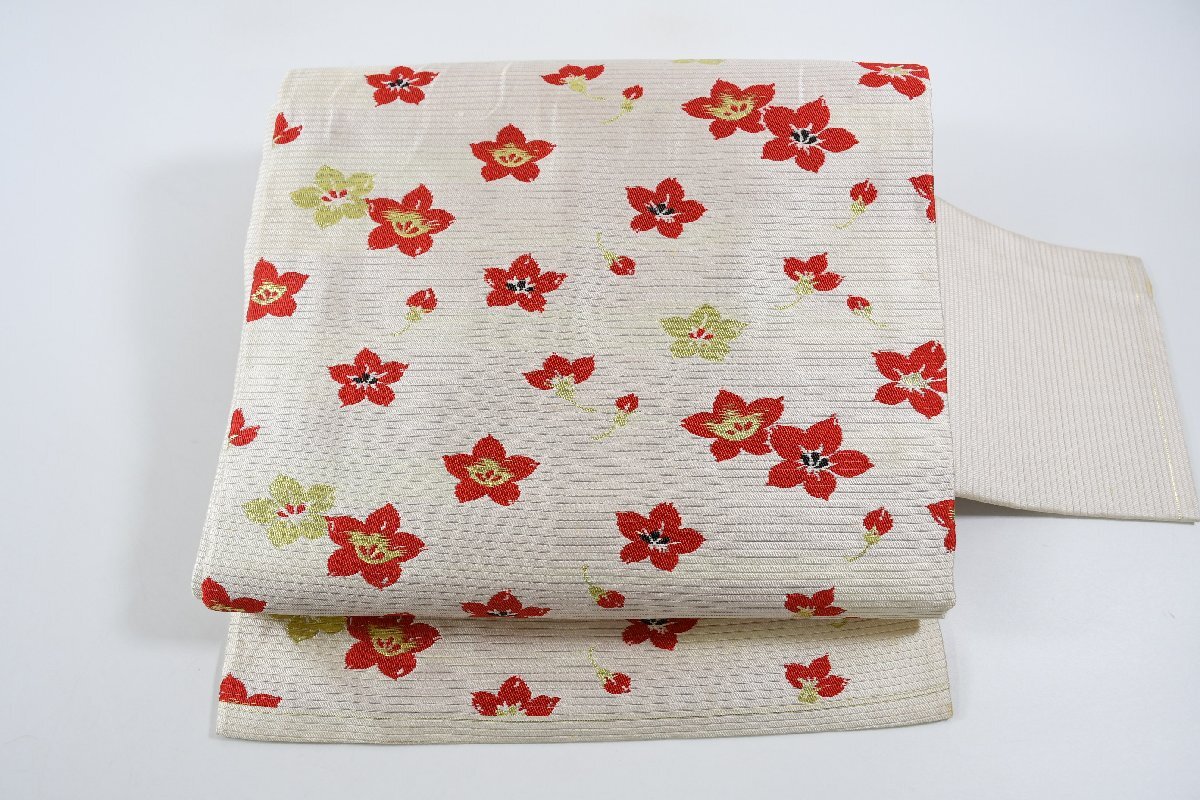 > 名古屋帯 アンティーク 花 秋草 帯丈350cm ★着物屋 ne-14605 桜庭呉服店
