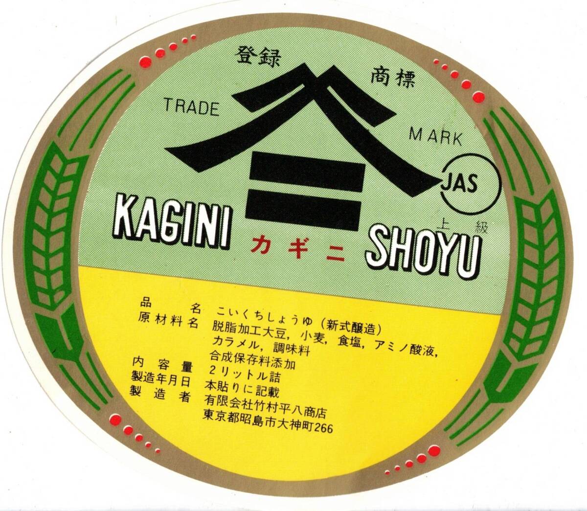 - ラベル 登録商標カギニ醤油 東京都昭島市有限会社竹村平八商店