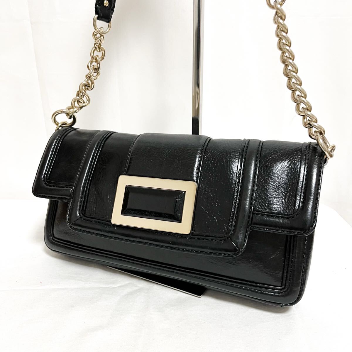 > 和681★ BR BANANA REPUBLIC バナナリパブリック トートバッグ 肩掛けバッグ レザーバッグ ブラック レディース 裏地ロゴ柄 チェーン