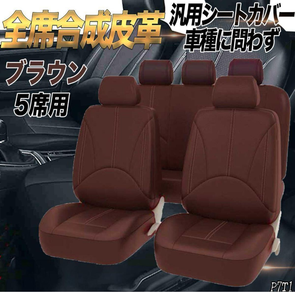 - シートカバー 5席セット 汎用性 軽自動車 普通車 合成皮革 ワインレット