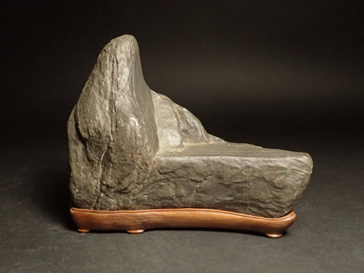 - S-150 コレクター収集品 水石 鑑賞石 神居古潭石? 盆栽 盆石 唐木台座17.5cmX8.5cm 15.0cm