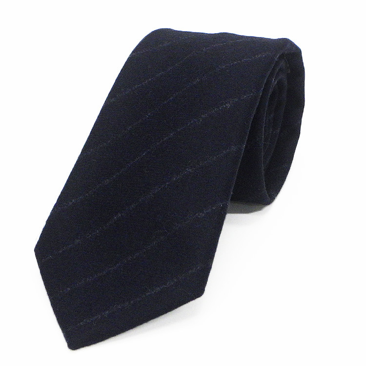 - 京都産 ウールネクタイ 濃紺×グレー/ストライプ ウール100% KYOTO VINTAGE ネクタイ メール便OK KV-WL24