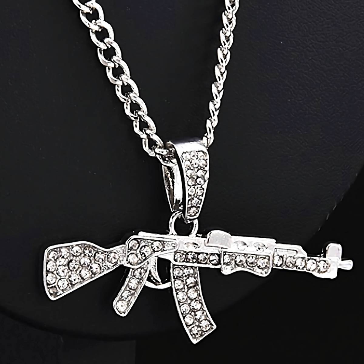 - 新品★送料無料★銀の機関銃 ヒップホップパンク ダイヤ プラチナ仕上925シルバーネックレス誕生日プレゼント旅行初春ギフト国内発送