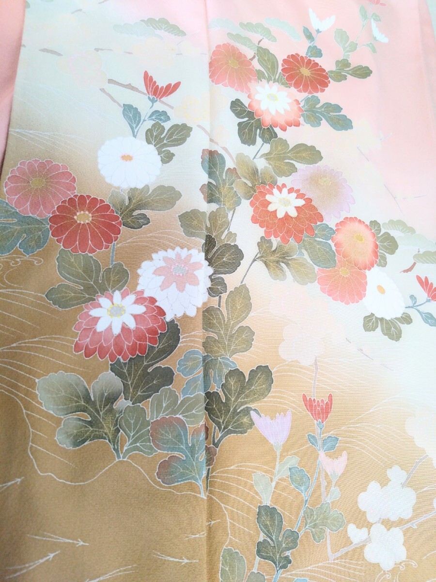 > ●116 友禅 作家物【博風 作】落款あり 手描き 染 訪問着 縮緬 くすみ薄ピンク 暈し 金彩 ラメ 正絹 逸品 入学式 入園式 式典 花屋 春色 ③