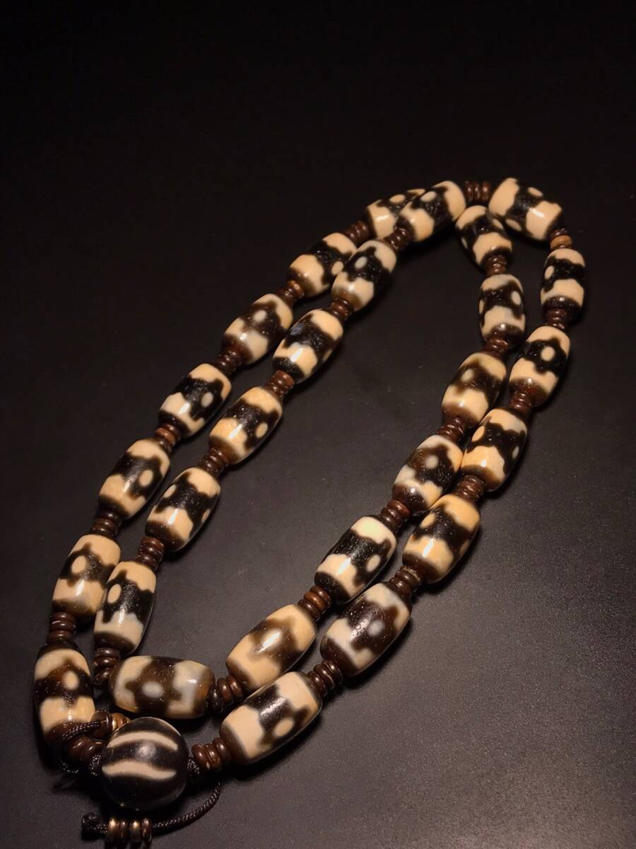 - ▽鴻▽ 瑪瑙製 細密彫 三眼天珠念珠ネックレス 置物 古賞物 中国古玩 中国古美術