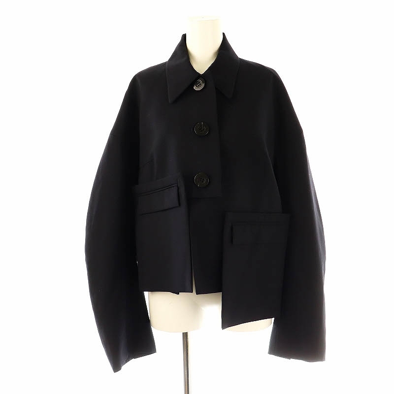 - エンフォルド ENFOLD 25SS サポートカラーショートジャケット SOUTIEN-COLLAR SHORT-JACKET シングル 38 濃紺