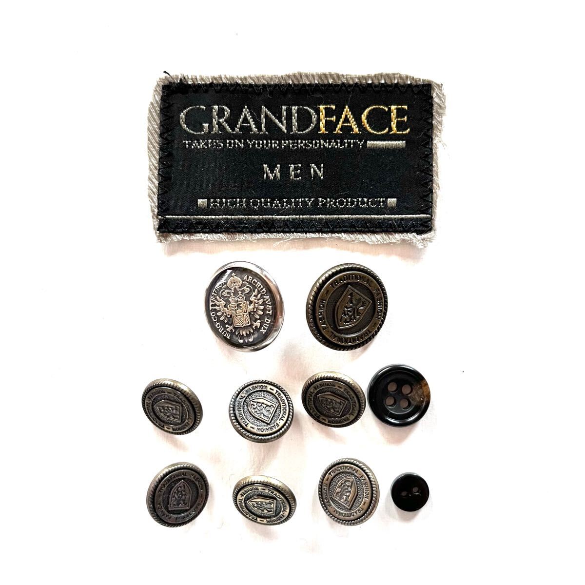 - GRAND FACE GRANDFACE MEN 足つきボタン 替えボタン ロゴ 銀ボタン ジャケット タグ 手芸 メンズ