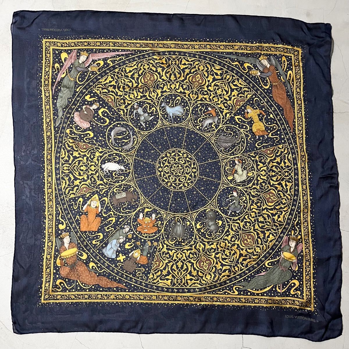 - Louis Vuitton ルイ・ヴィトン シルクスカーフ 12星座 総柄 ヴィンテージ OLD ネイビー
