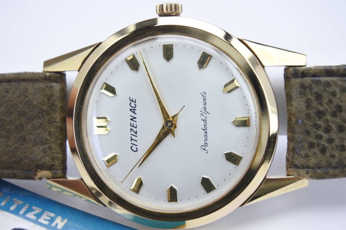 - 国産名機*1960年代製 シチズン エース 21石 手巻紳士腕時計 純正ベルト タグ付き デッドストック品