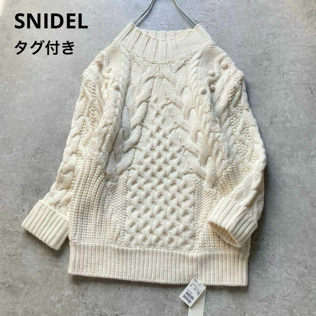 > タグ付き!スナイデル ビックケーブルニットワンピース ハイネック アイボリー フリーサイズ SNIDEL